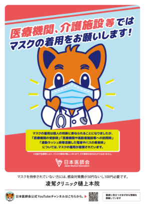 インフルエンザの流行るこの時期は、当院での受診時にマスクの着用をお願いしております。